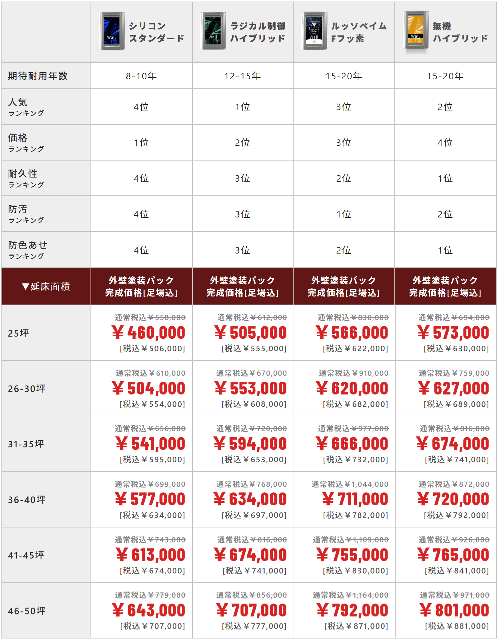 ■50坪以上の建物は、お見積りご依頼または外壁塗装費用シミュレーションをご利用ください。